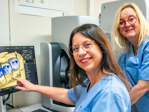 Frau Aprill als Laborleiterin und Frau Codenotti sind speziell auf moderne Techniken und den "digitalen Workflow" fortgebildet, haben jahrelange Erfahrung und freuen sich, Ihr individuelles Lächeln nachbilden zu können.
